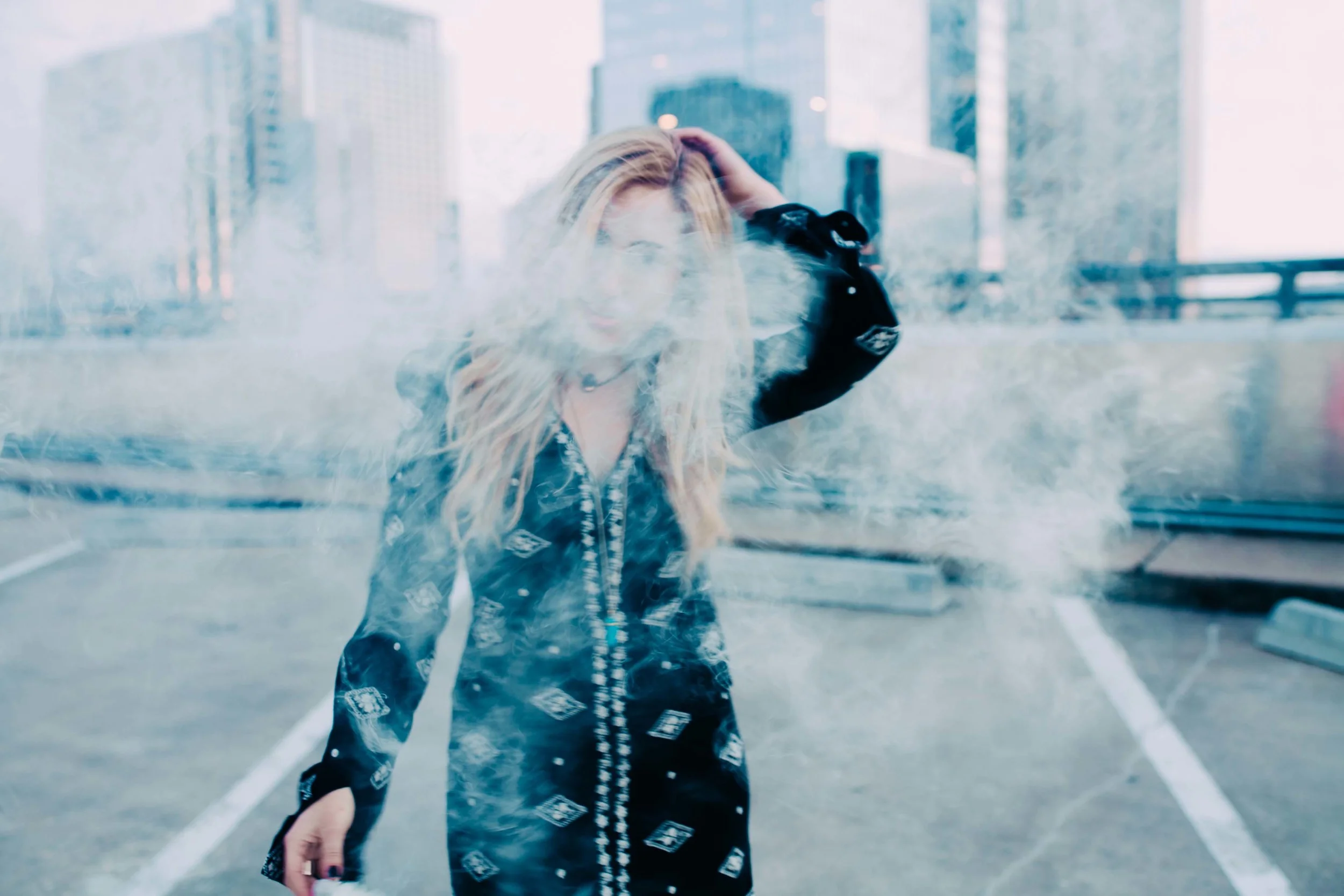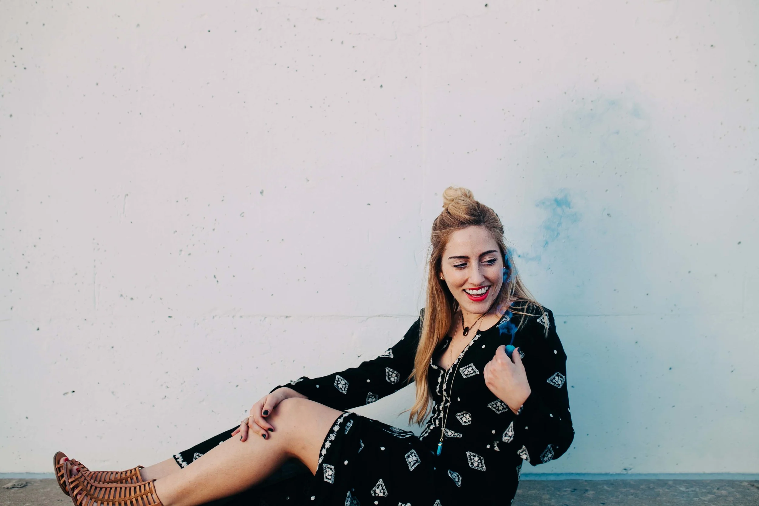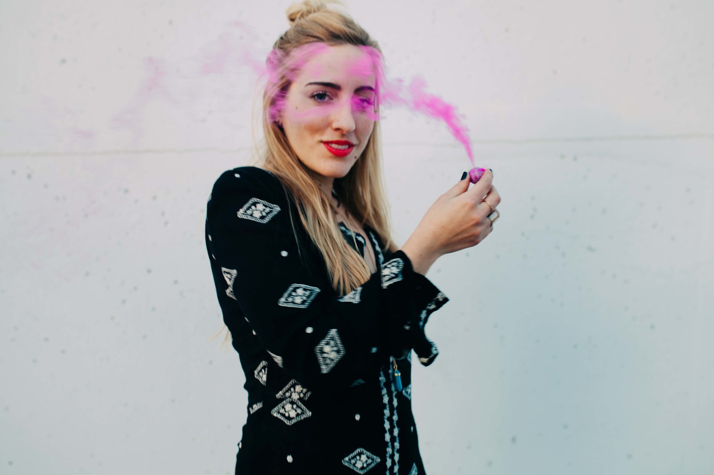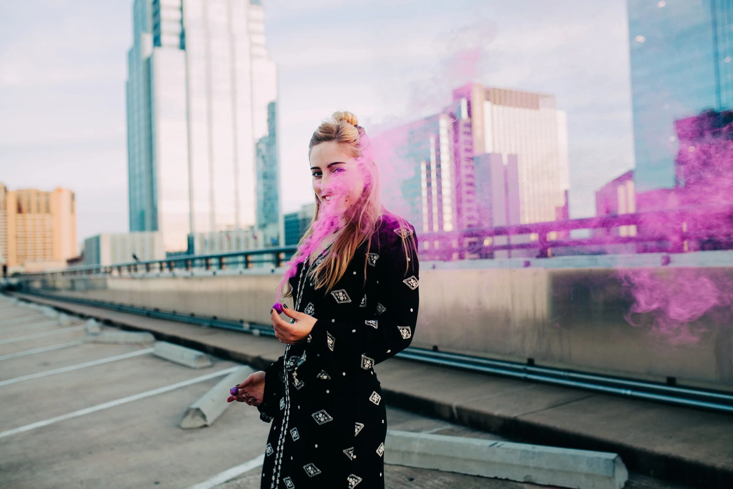 I had the most fun ever doing this shoot with my talented friend Courtney Pittman. She had the amazing idea of adding smoke bombs on a garage roof top and watching the sun set. It was magical.. and hilarious because no one tells you that smoke bombs burn your eyes so bad so the outtakes of this shoot were bomb. HA. But seriously, it's probably why I am laughing in half my photos..