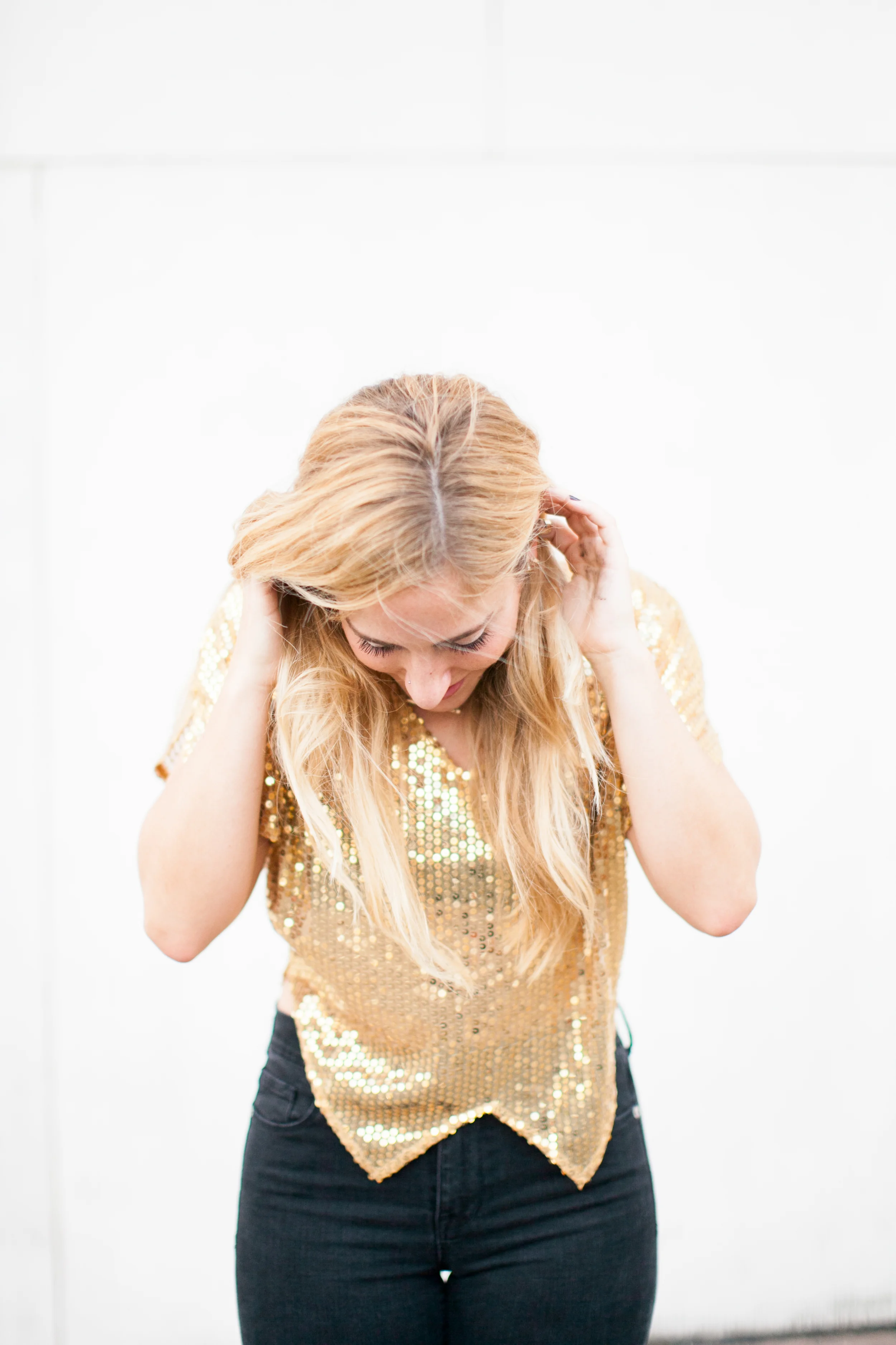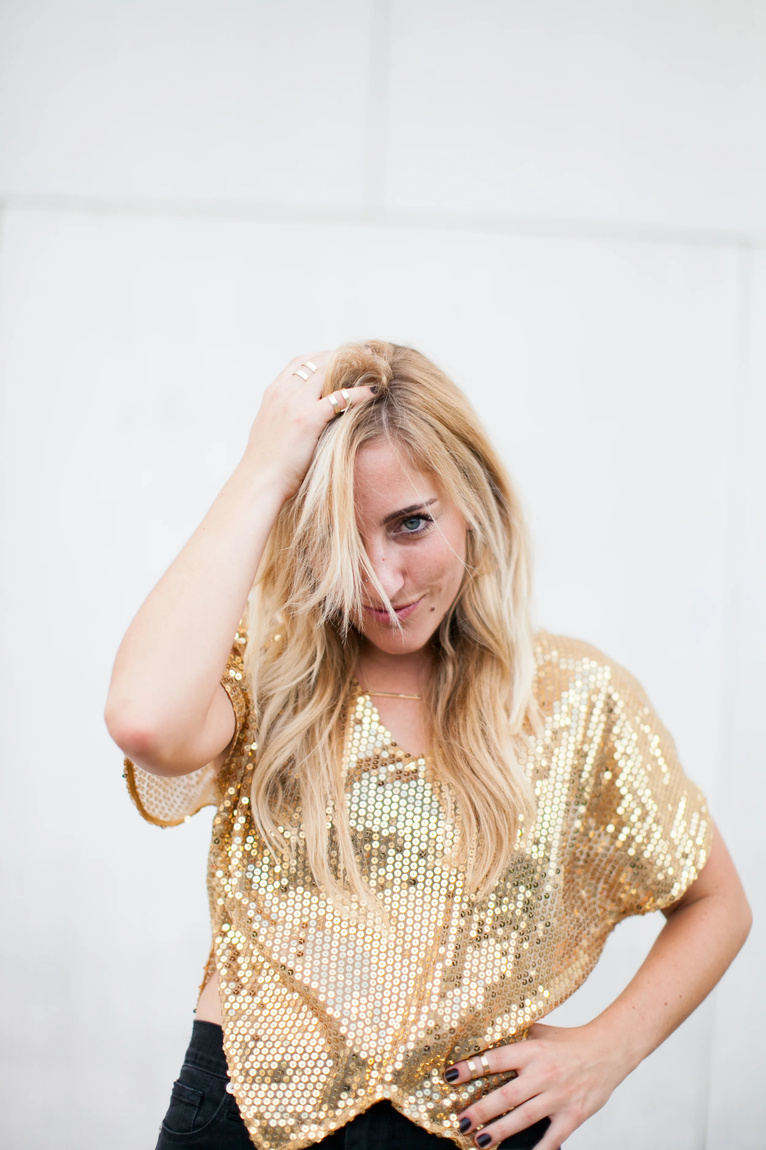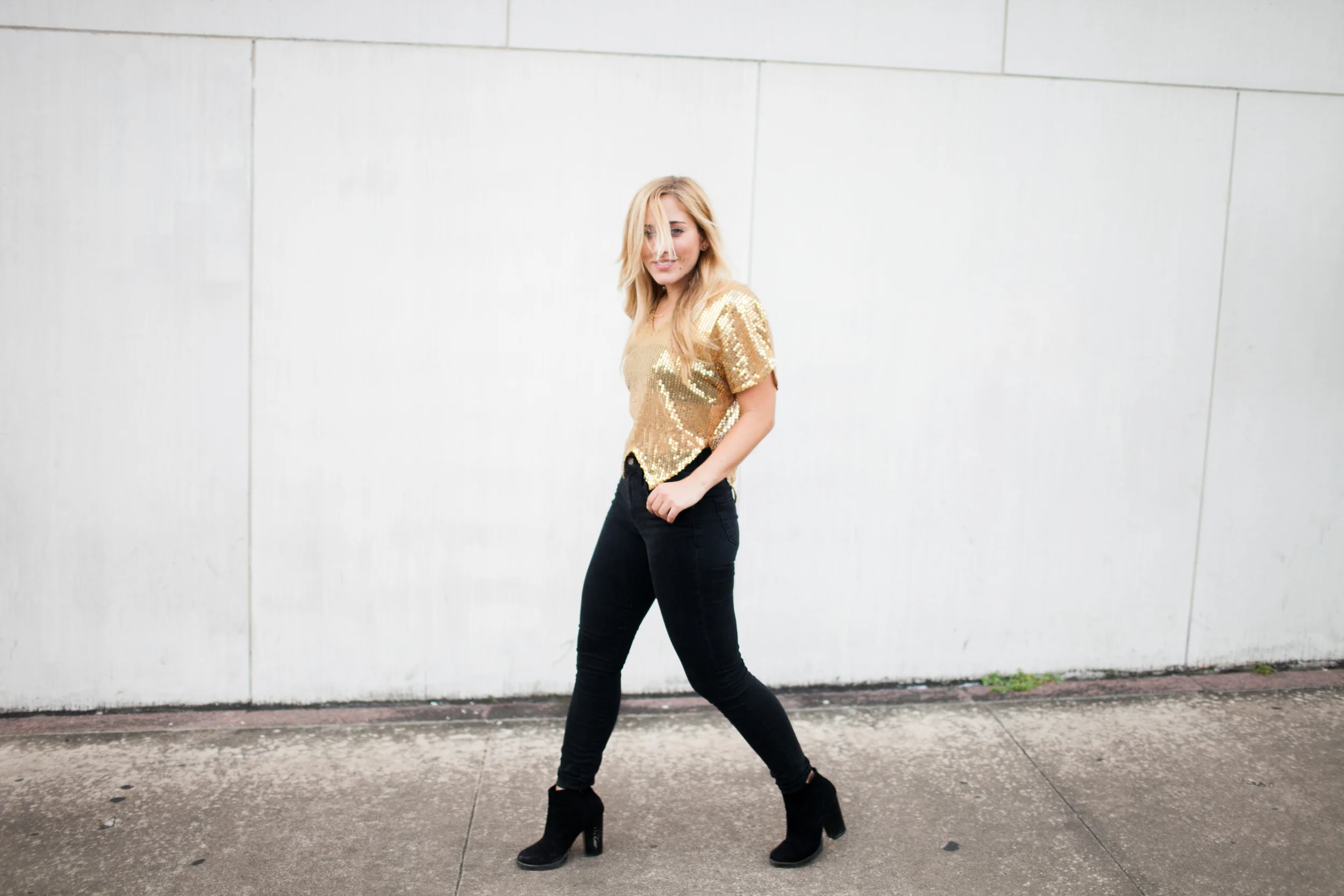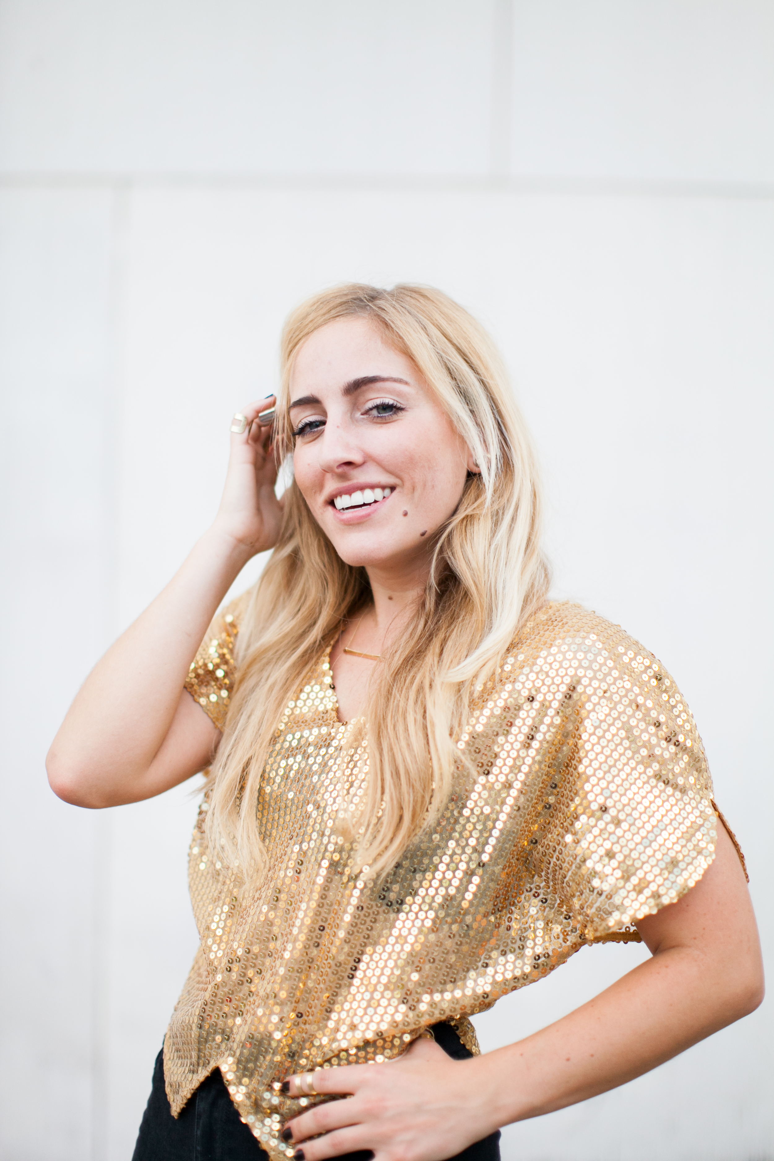 I found this majjjj gold sequin top at Free People (similar) a while back and wanted to wear it to a NYE party but ended up letting it hang in my closet.. twas very sad. It just hung there without use.. sooo then The Gold Atlas came to life & I realized that is what it was waiting for (clothes have feelings right?). So, if you ever buy something and don't wear it.. there's sometimes a reason.. like you might start a blog and think this totally defines a part of you. Madewell is my go to for denim and these black high-risers seem to live on my body. My accessories are from H&M - love me some ring stacking. Booties are Zara. Basically black and gold are the combo to the most amazing combo.. like pb&j or margs & tacos or pita & hummus or road trips & mixed tapes or coffee & topknots or campfires & s'mores..etc. Basically just letting you know I love me some black & gold.